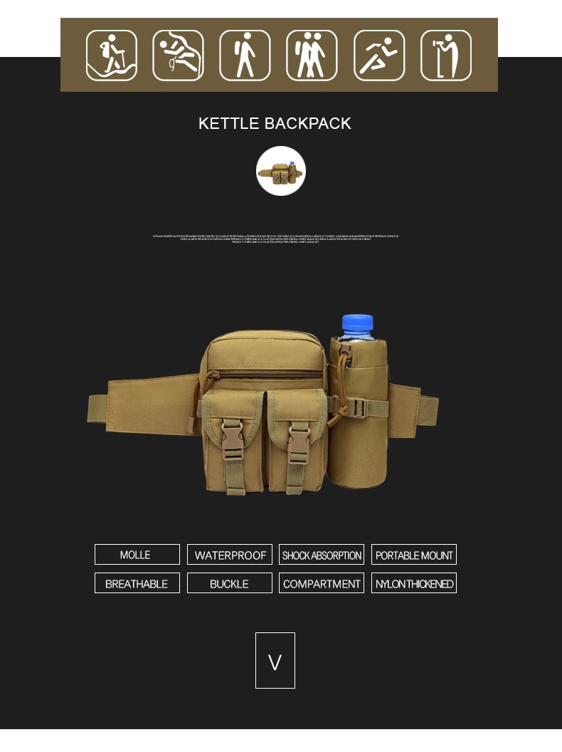 Etiquetes populars: Motxilla de cintura tàctica portàtil de camp de l'exèrcit de camuflatge de la selva Bossa d'ampolla d'aigua per acampar a l'aire lliure